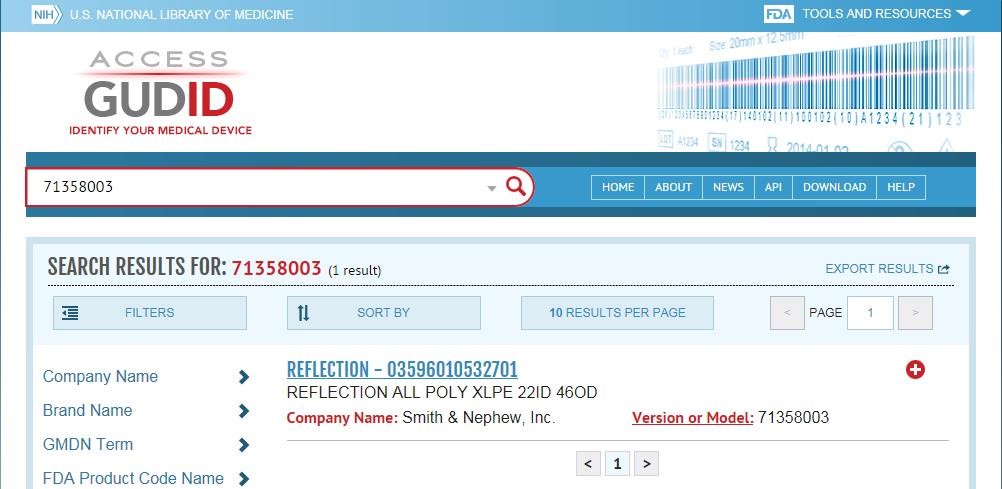 Step 5: Enter the Catalogue Number into the search field of AccessGUDID and click 'Enter'.